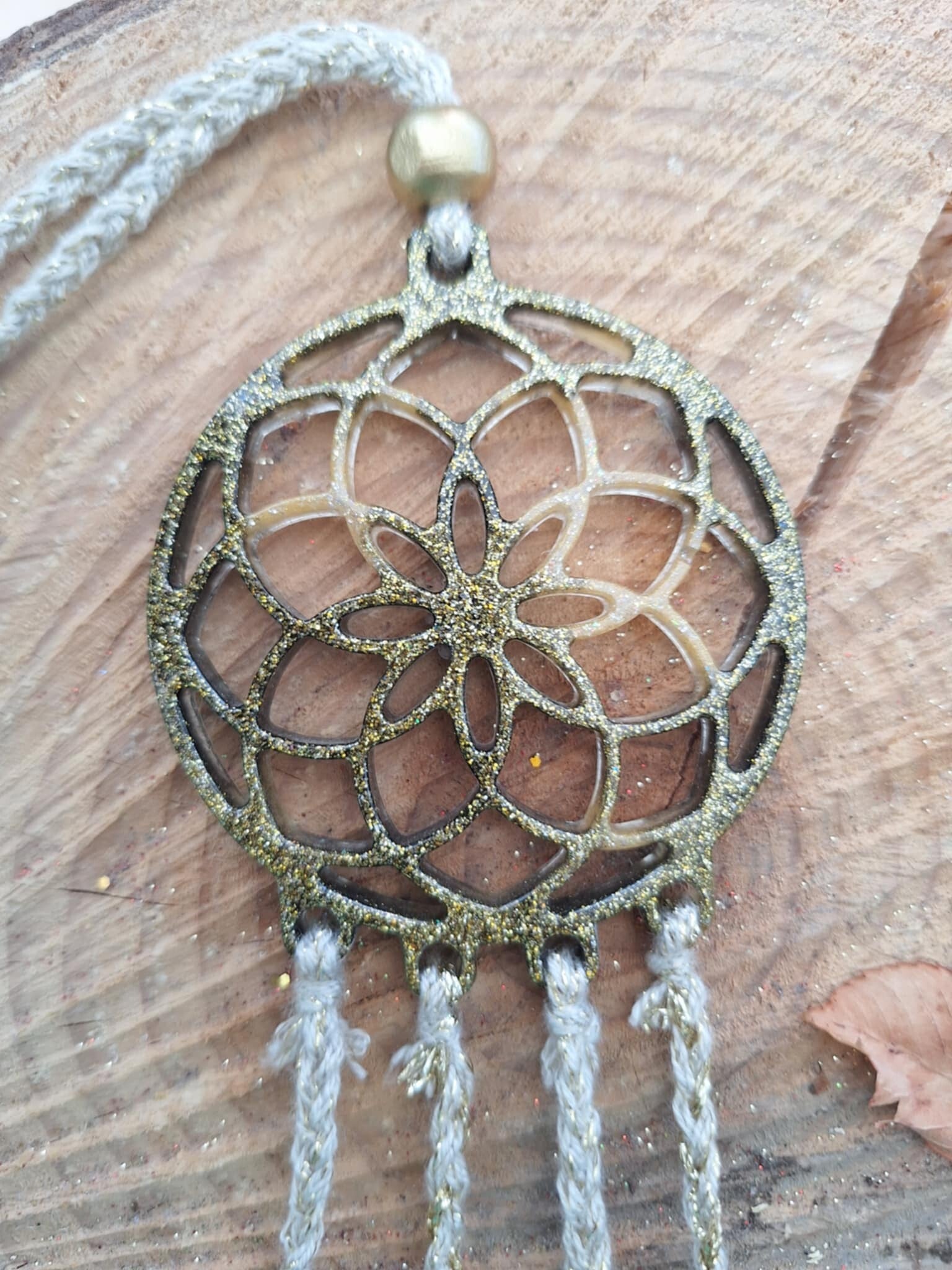 Cet attrape rêve est une création unique réalisée à partir de résine de trés haute qualité, il mesure 38cm.