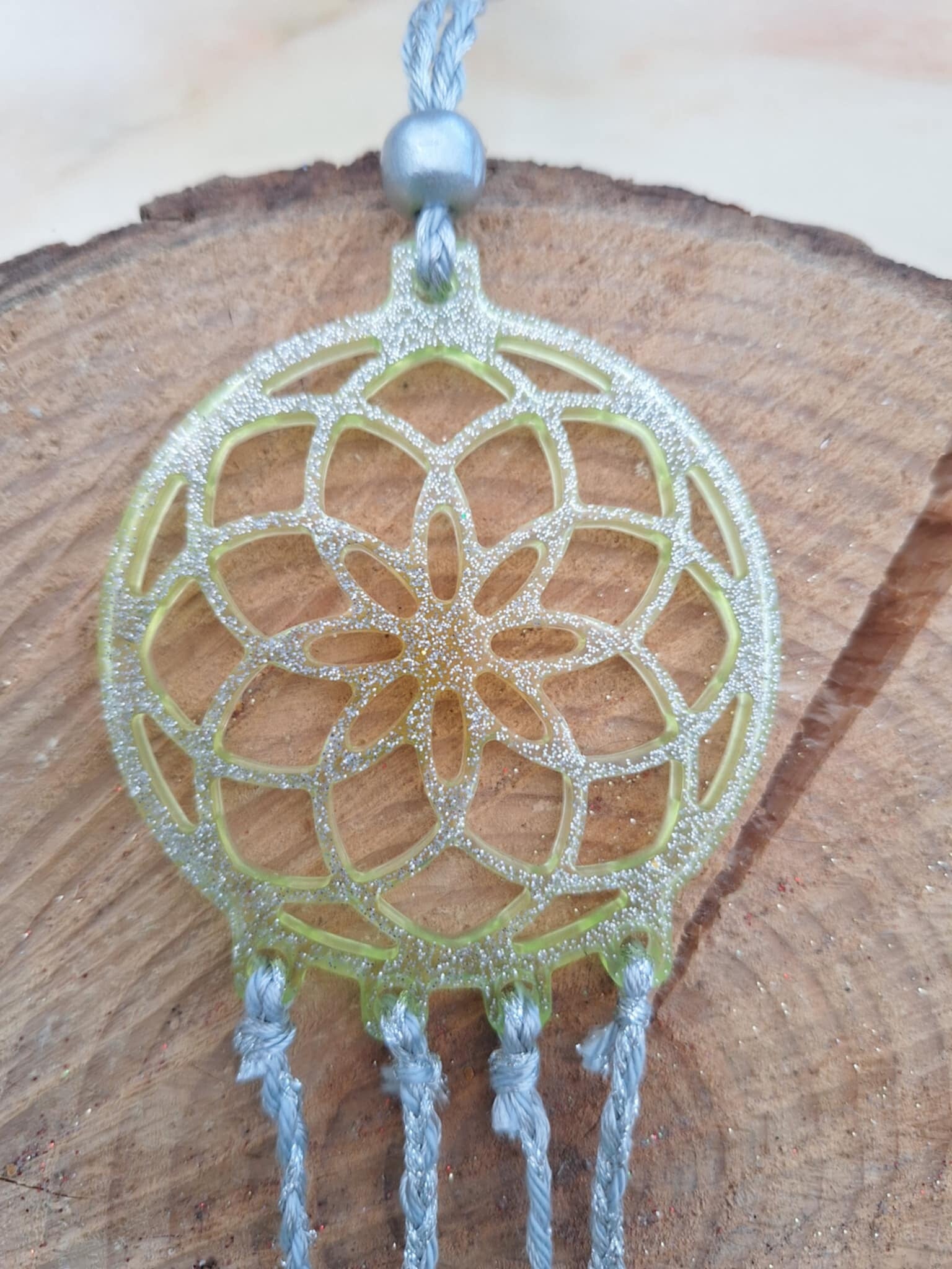 Cet attrape rêve est une création unique réalisée à partir de résine de trés haute qualité, il mesure 44cm.