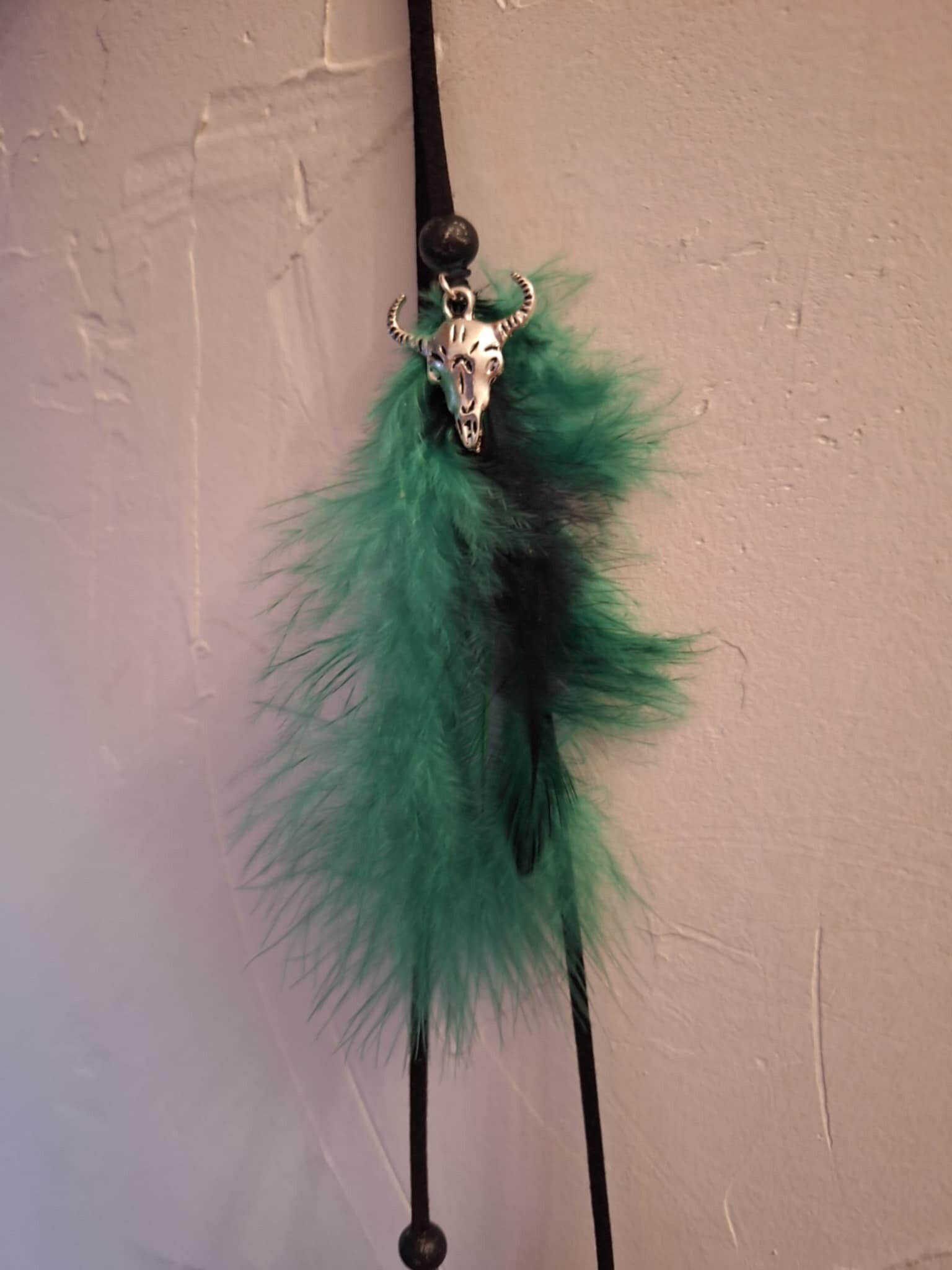 Clips avec cordon de suédine en couleur. Perles en bois. Plumes véritable. Certains avec breloques.